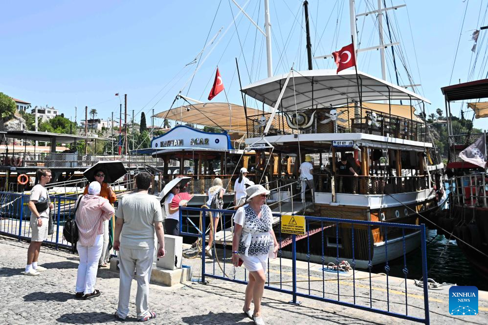 ANTALYA, Türkiye, Aug. 18 (Xinhua) -- In Antalya's old city of Kaleici, shopkeepers watch as tourists duck into shaded cafes. At the harbour, excursion boats stay moored through the midday heat, their crews waiting for cooler hours.