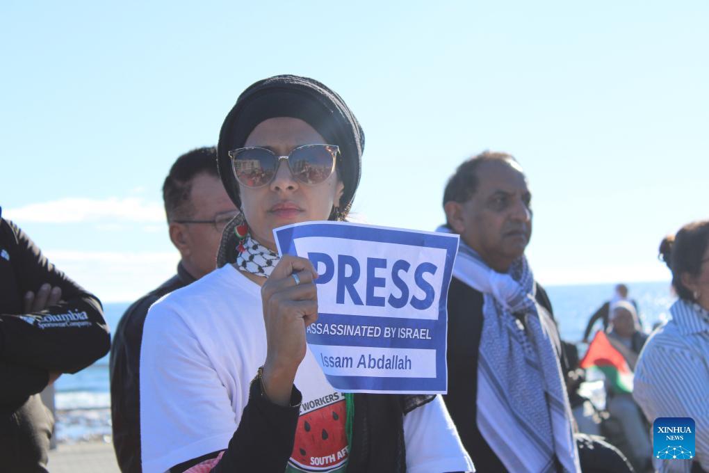 CAPE TOWN, Aug. 17 (Xinhua) -- South African journalists and media workers led a march in Sea Point, Cape Town, on Sunday, calling for greater protection for Palestinian journalists in Gaza and expressing solidarity with their slain colleagues.