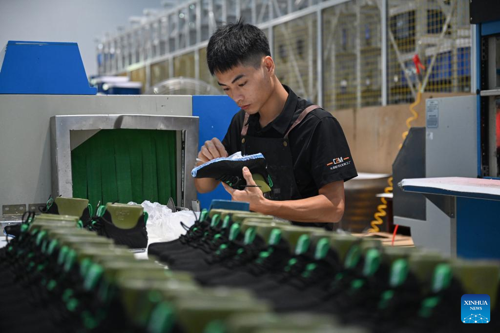 The footwear and apparel industry is one of the pillar industries of Putian. The city hosts more than 4,200 shoe and shoe material enterprises, with an annual production capacity exceeding 1.2 billion pairs. In recent years, local authorities have promoted intelligent upgrades and digital transformation among enterprises, injecting new vitality into the sector. (Xinhua/Zhou Yi)