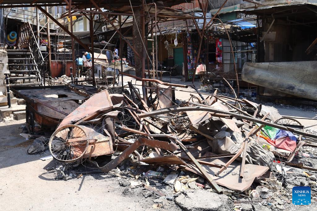 (250819) -- DAMASCUS, Aug. 19, 2025 (Xinhua) -- Destroyed shops are seen following conflicts in Sweida, Syria, Aug. 14, 2025.