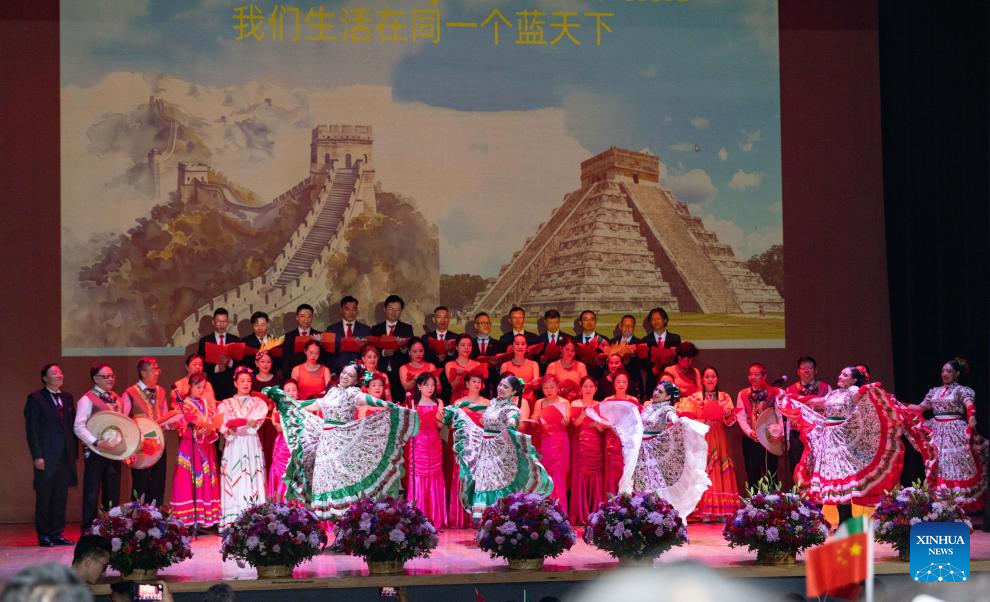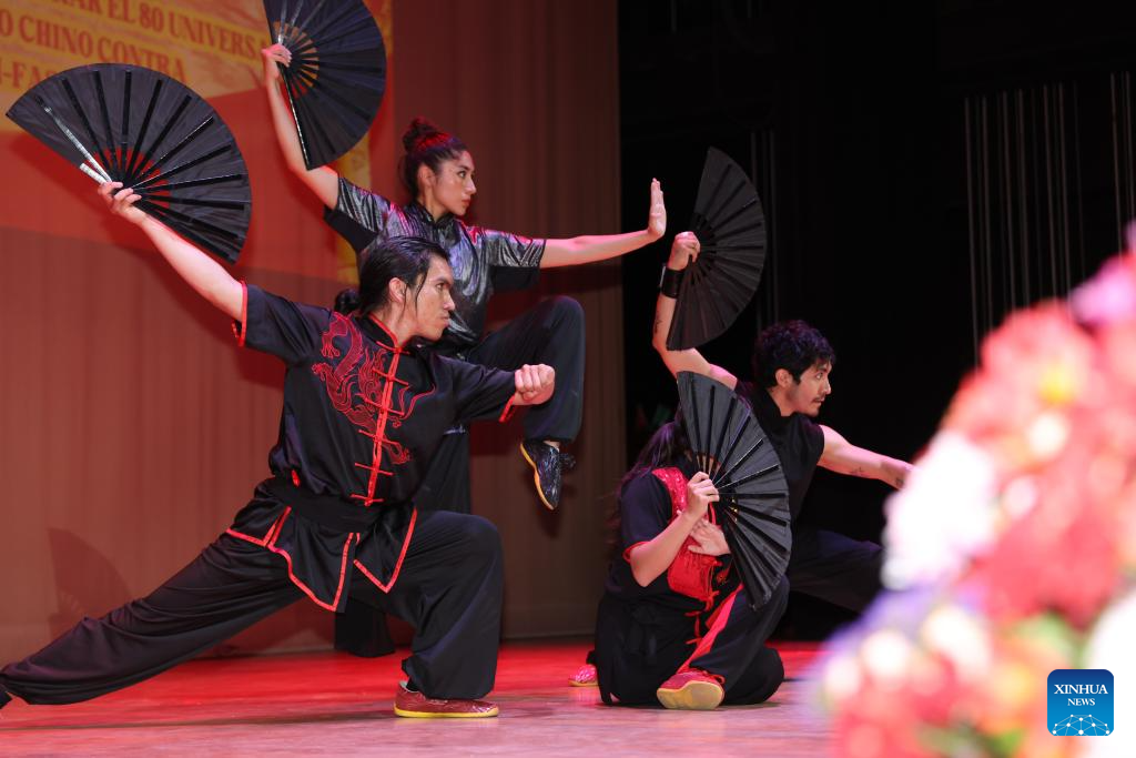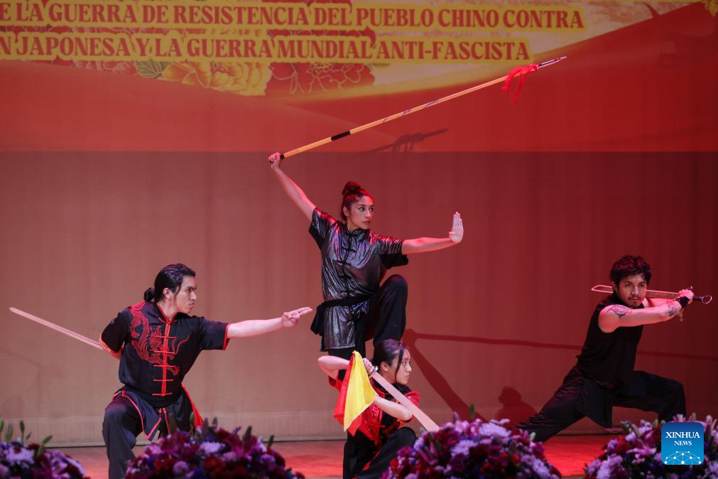 Artists perform at a gala commemorating the 80th anniversary of the victory of the Chinese People's War of Resistance Against Japanese Aggression and the World Anti-Fascist War, in Mexico City, Mexico, Aug. 17, 2025. (Xinhua/Li Mengxin)