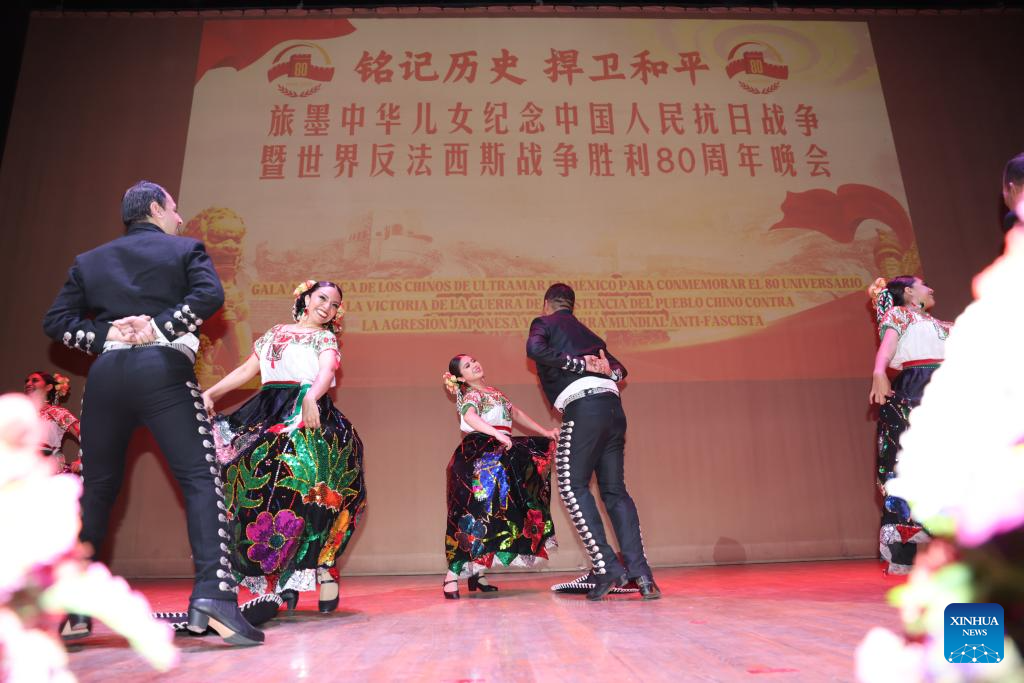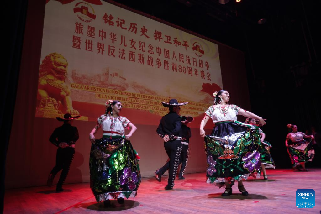 Artists perform at a gala commemorating the 80th anniversary of the victory of the Chinese People's War of Resistance Against Japanese Aggression and the World Anti-Fascist War, in Mexico City, Mexico, Aug. 17, 2025. (Photo by Francisco Canedo/Xinhua)