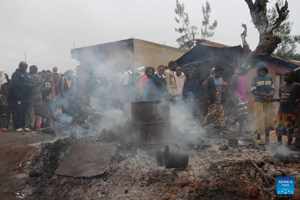 This photo taken on Aug. 17, 2025 shows the debris at the town of Oicha in Beni territory of North Kivu Province, the Democratic Republic of the Congo (DRC). According to local and military authorities, more than 50 civilians were killed between Thursday and Sunday in a series of attacks blamed on the ADF rebels in the Lubero and Beni territories of North Kivu.(Str/Xinhua)