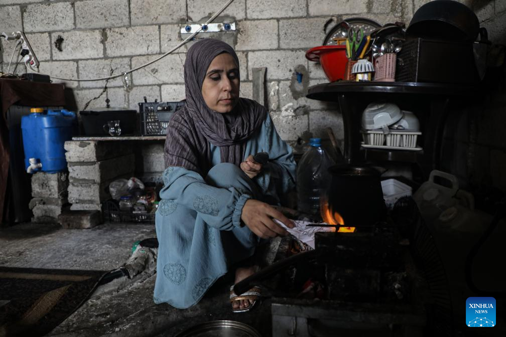 Palestinian woman Reham Said is seen at a temporary shelter in Gaza City, on Aug. 13, 2025.(Photo by Rizek Abdeljawad/Xinhua)