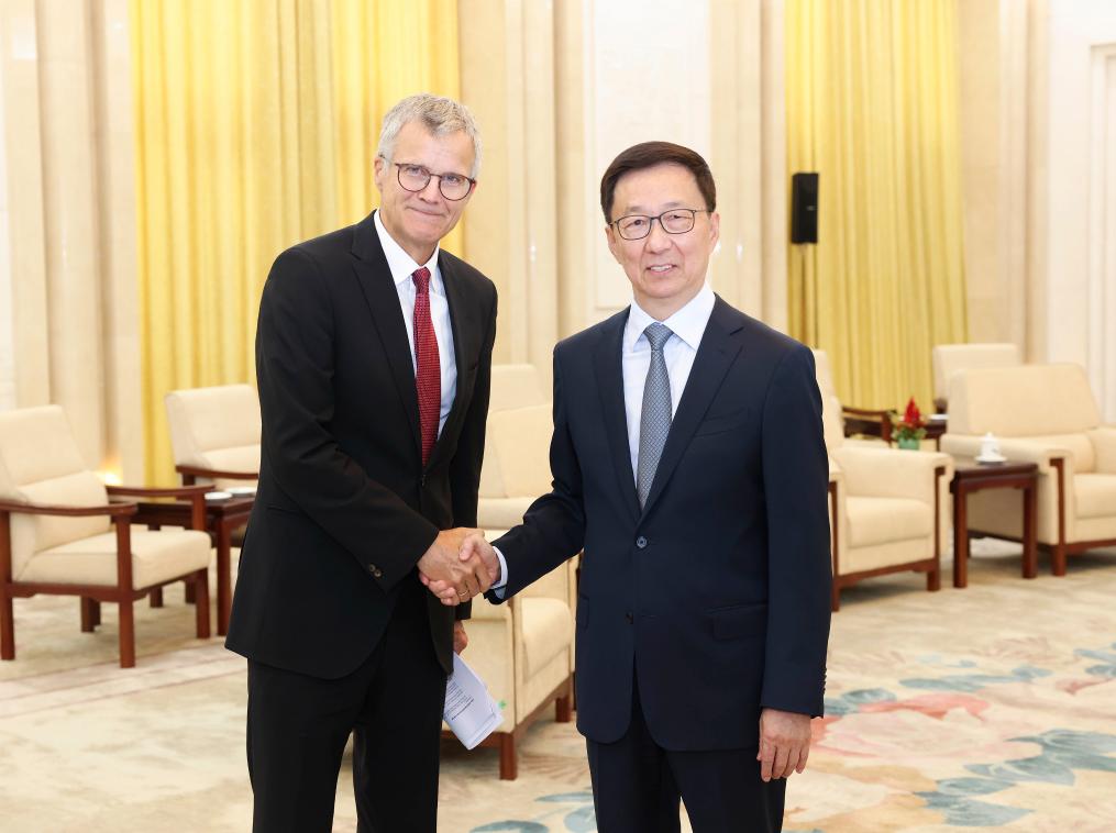 BEIJING, Aug. 20 (Xinhua) -- Global biomedical companies, including Novo Nordisk, are welcome to step up cooperation with China, Chinese Vice President Han Zheng said on Wednesday when meeting with Helge Lund, chair of the company's board of directors.