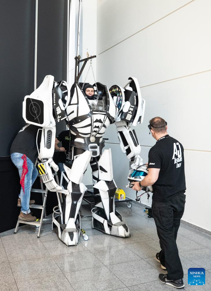 A performer makes preparations at Gamescom 2025 in Cologne, Germany, on Aug. 20, 2025. Gamescom 2025, one of the world's largest trade fairs for computer and video games, kicked off here on Wednesday with a record 1,500 exhibitors, highlighting both the industry's global reach and the growing footprint of Chinese developers. (Xinhua/Zhang Fan)
