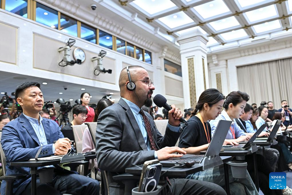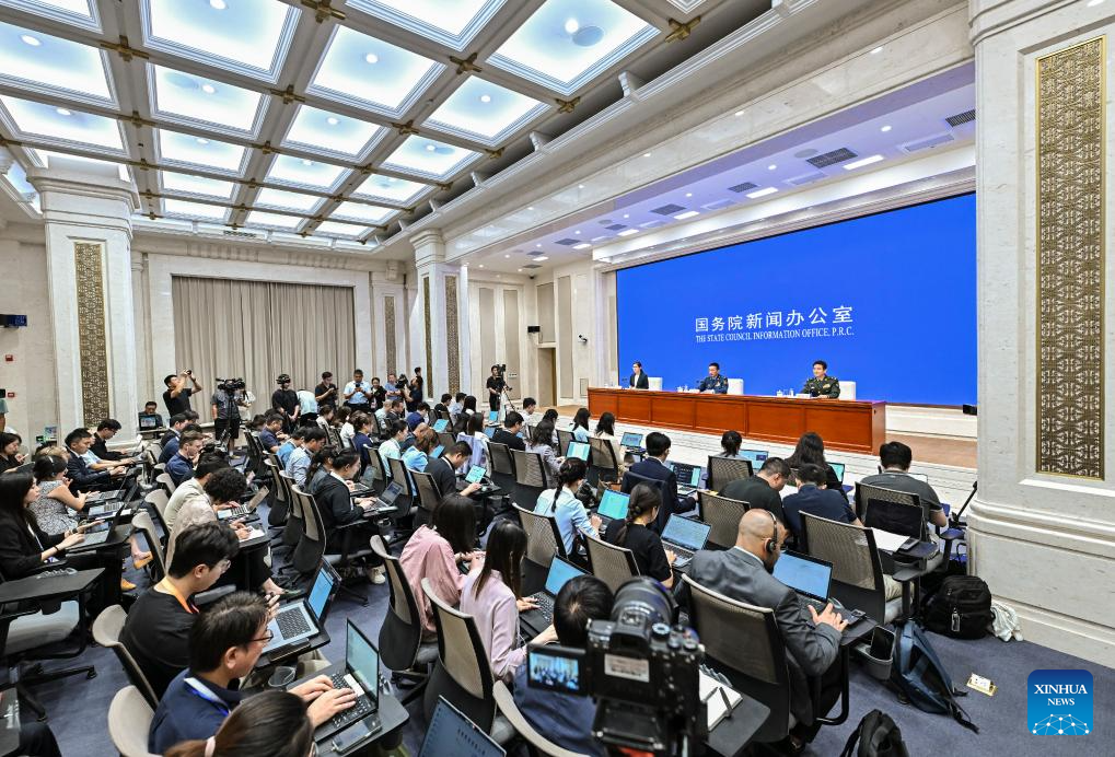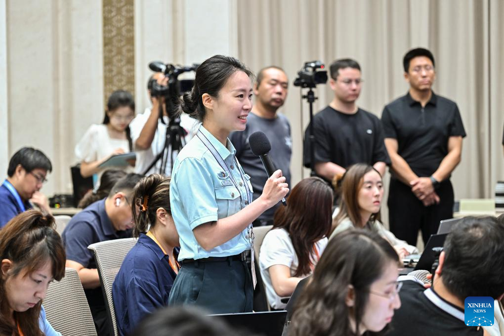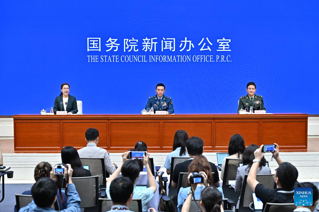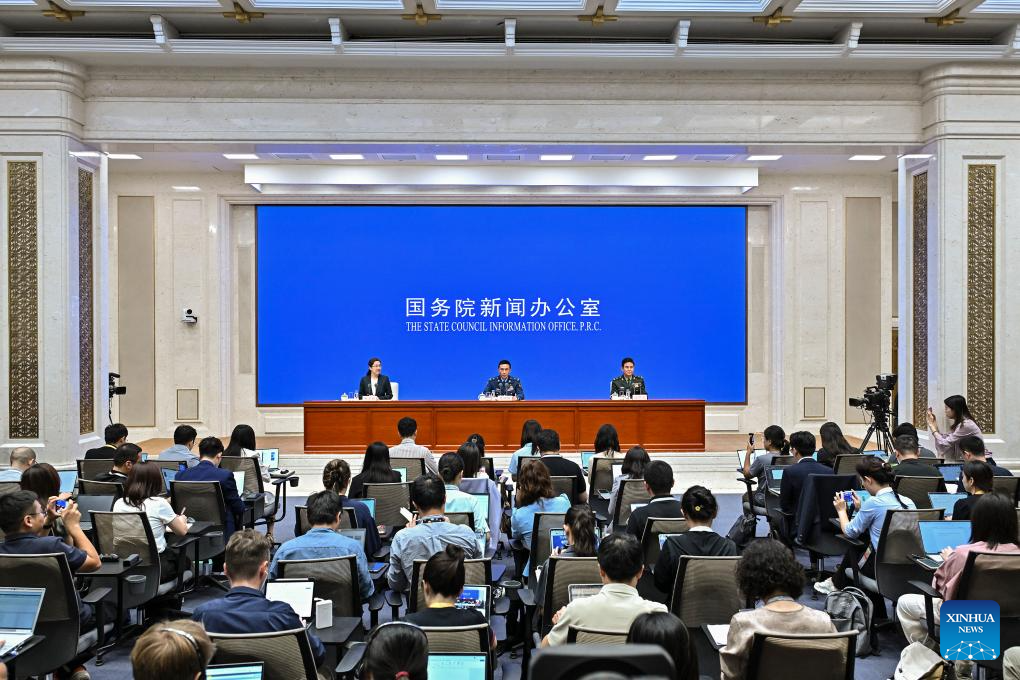 A press conference on V-Day military parade preparations is held by the State Council Information Office in Beijing, capital of China, Aug. 20, 2025. (Xinhua/Li Xin)