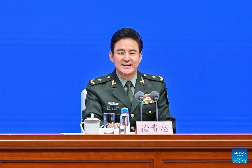 Major General Xu Guizhong, a senior officer from the Central Theater Command of the People's Liberation Army, speaks during a press conference on V-Day military parade preparations held by the State Council Information Office in Beijing, capital of China, Aug. 20, 2025. (Xinhua/Li Xin)