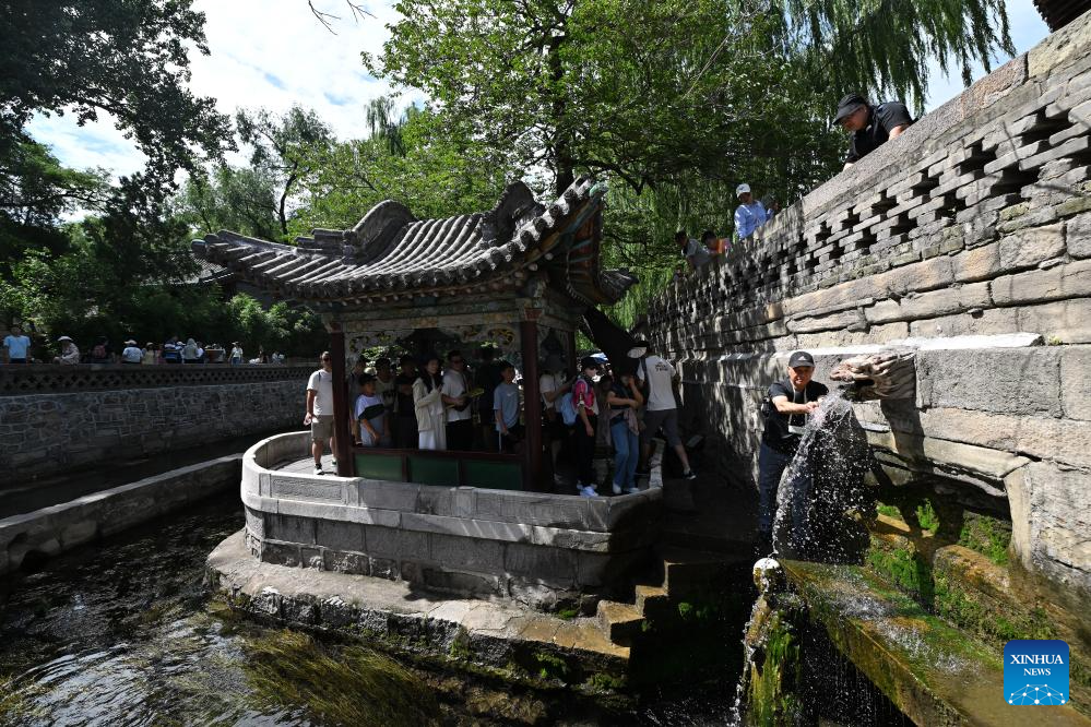 People visit the Nanlao Spring at Jinci Temple in Taiyuan, north China's Shanxi Province, Aug. 7, 2025. (Xinhua/Zhan Yan)