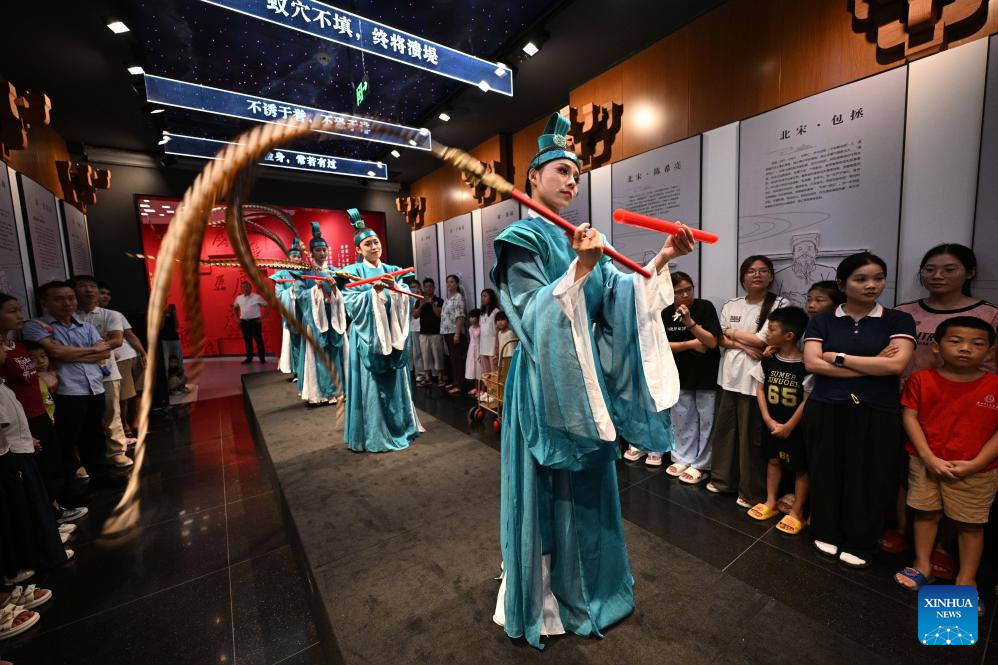 Actors stage a live performance at Hairui cultural park in Haikou, south China's Hainan Province, Aug. 20, 2025. The park has launched a regular night theater, staging free live performances for visitors. (Xinhua/Pu Xiaoxu)