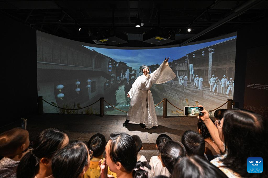This photo taken on Aug. 20, 2025 shows a scene during a live performance at Hairui cultural park in Haikou, south China's Hainan Province. The park has launched a regular night theater, staging free live performances for visitors. (Xinhua/Pu Xiaoxu)