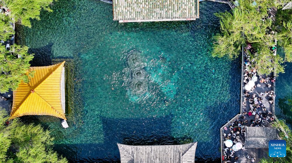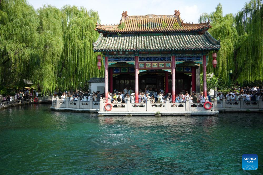 People visit the Baotu Spring in Jinan, east China's Shandong Province, Aug. 22, 2025. (Xinhua/Xu Suhui)