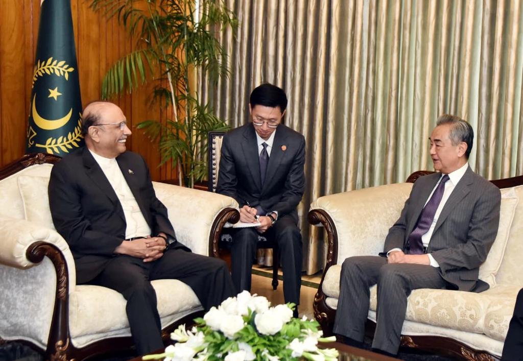 Pakistani President Asif Ali Zardari meets with visiting Chinese Foreign Minister Wang Yi, also a member of the Political Bureau of the Communist Party of China Central Committee, in Islamabad, Pakistan, Aug. 21, 2025. (Xinhua)