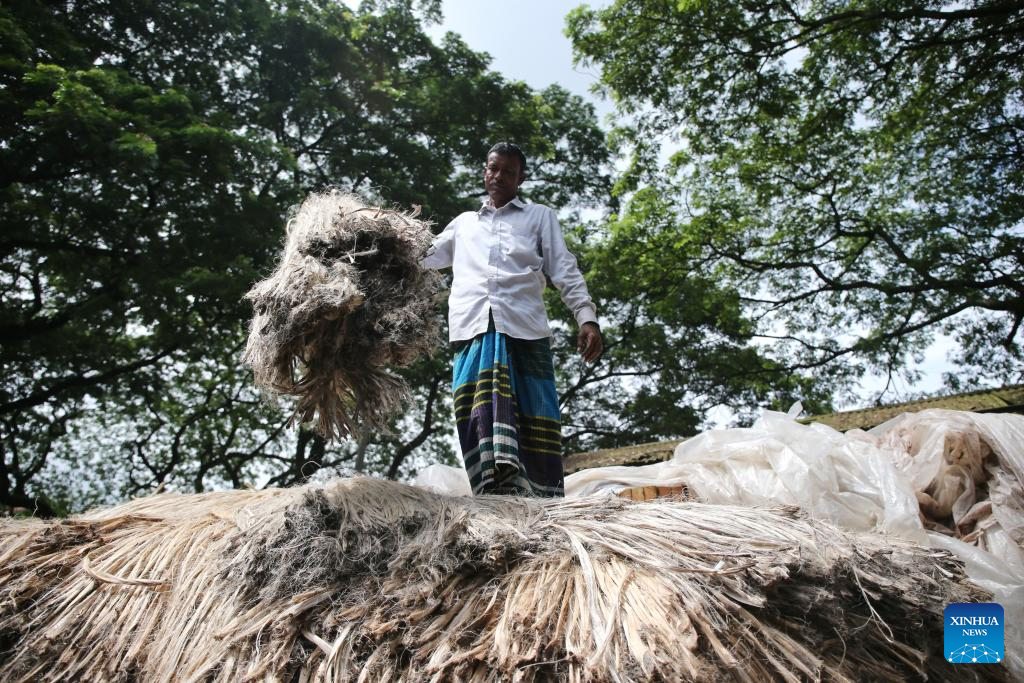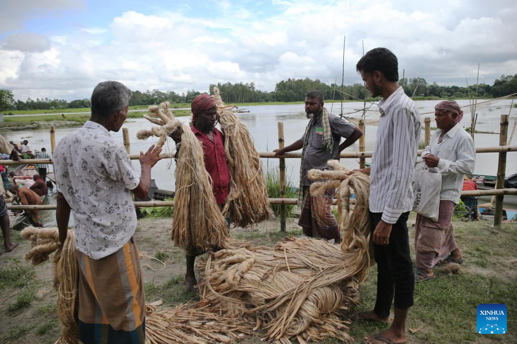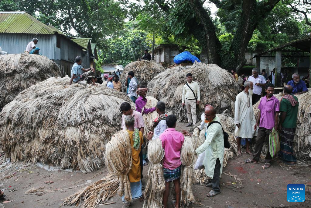 This photo taken on Aug. 20, 2025 shows a scene at a jute market in Manikganj, Bangladesh. (Photo by Habibur Rahman/Xinhua)