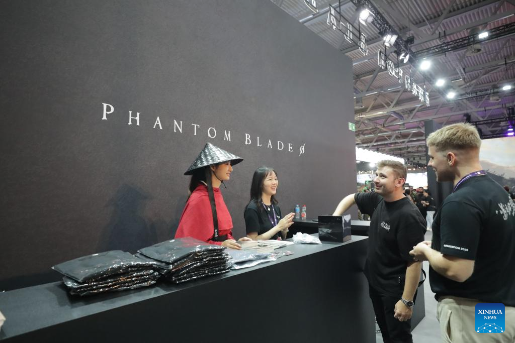 Visitors try the game "Phantom Blade Zero" during the Gamescom 2025 in Cologne, Germany, Aug. 20, 2025. Gamescom 2025, one of the world's largest trade fairs for computer and video games, kicked off here on Wednesday with a record 1,500 exhibitors, highlighting both the industry's global reach and the growing footprint of Chinese developers. (Xinhua/Zhang Fan)