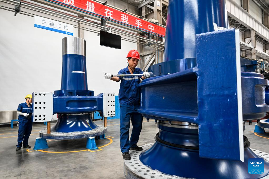 Workers are busy at the general assembly workshop in the Mingyang New Energy Intelligent Manufacturing Industrial Park in Baotou, north China's Inner Mongolia Autonomous Region, July 29, 2025.