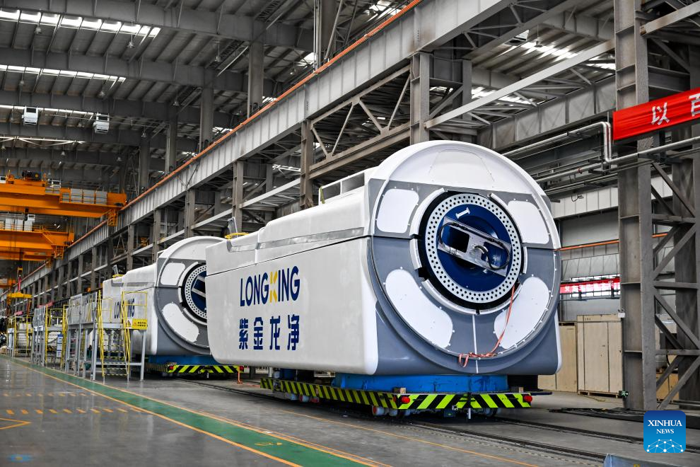 This photo shows wind turbine nacelles at the general assembly workshop in the Mingyang New Energy Intelligent Manufacturing Industrial Park in Baotou, north China's Inner Mongolia Autonomous Region, July 29, 2025.