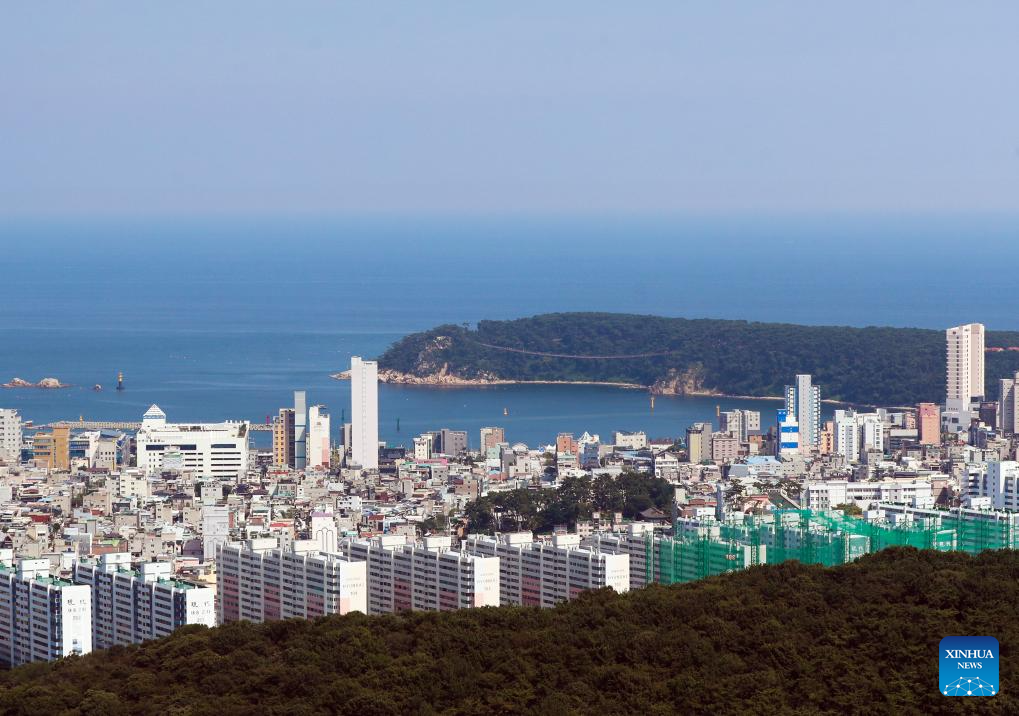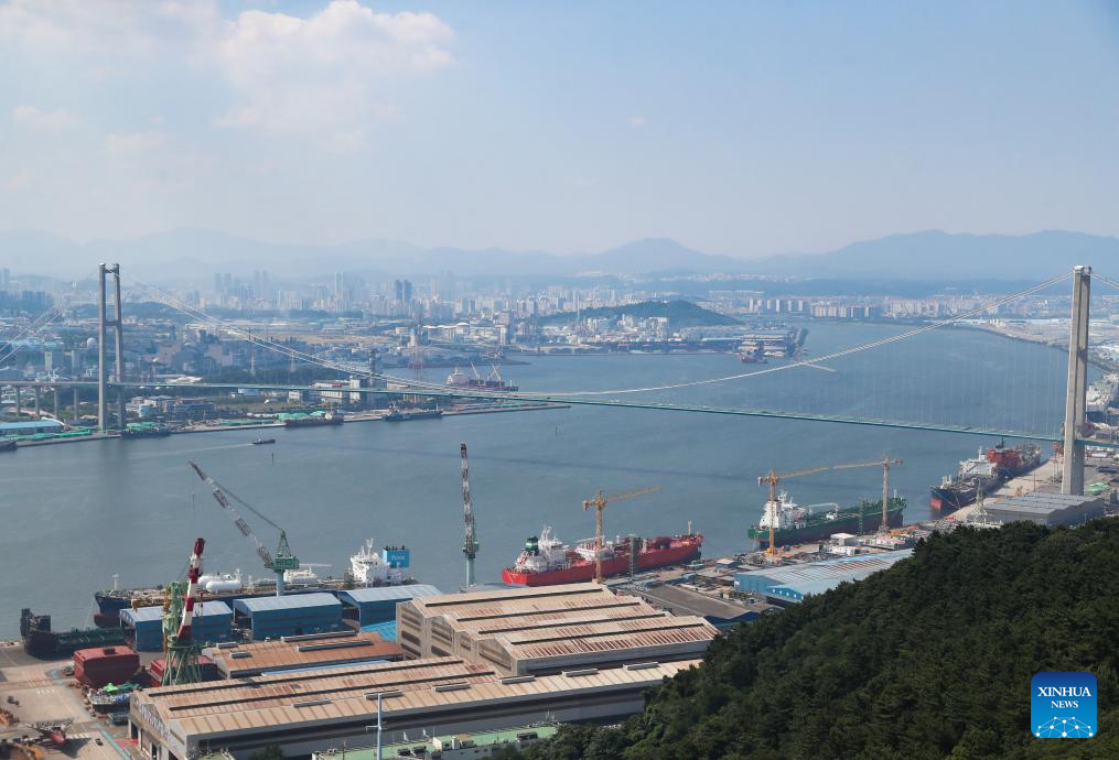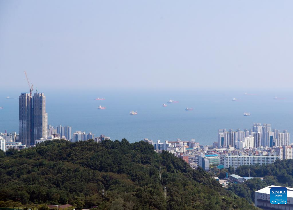 This photo taken on Aug. 23, 2025 shows a sea view of Ulsan, South Korea. Ulsan, located in southeastern South Korea, has a population of over one million and is a renowned port city. (Xinhua/Yao Qilin)