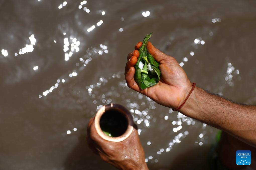 Kuse Aunsi is a Hindu festival in which fathers, living or past, are honored. (Photo by Sulav Shrestha/Xinhua)