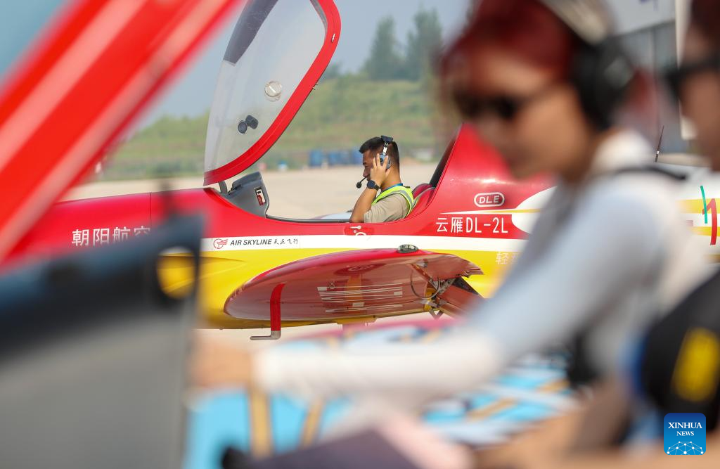 A pilot prepares for a flight aboard an aircraft at a general aviation industrial park in Laixi, Qingdao, east China's Shandong Province, Aug. 24, 2025. Laixi City has made efforts in promoting general aviation industry, including establishing a professional industrial park, introducing airplane manufacture companies and developing flight training business, which have activated the vitality of low-altitude economy. (Photo by Zhang Jingang/Xinhua)