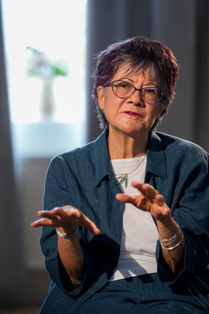 Zoe Reed, chair emerita of the Society for Anglo-Chinese Understanding (SACU), speaks during an interview with Xinhua in London, Britain, on July 14, 2025. (Xinhua/Wu Lu)