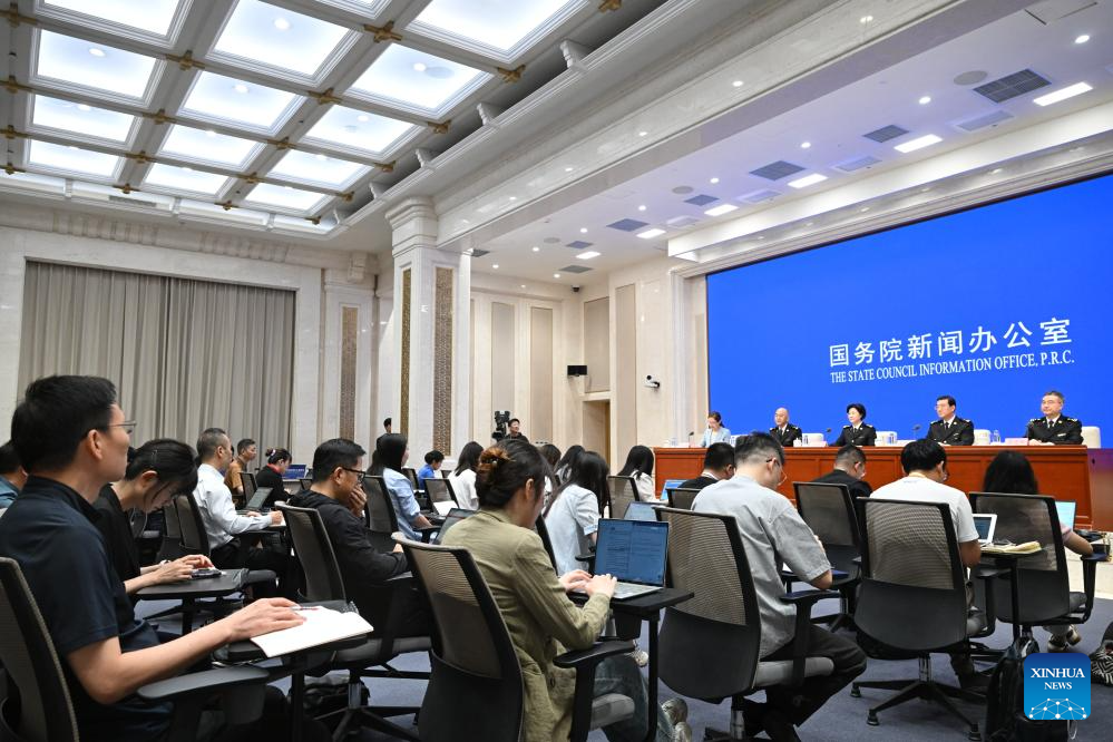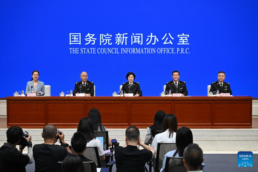 A press conference on China Customs' achievements in safeguarding borders and promoting high-quality development in the 14th Five-Year Plan period (2021-2025) is held by the State Council Information Office (SCIO) in Beijing, capital of China, Aug. 25, 2025. (Xinhua/Chen Yehua)