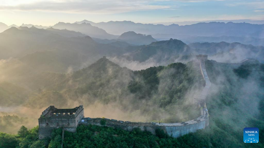 An aerial drone photo taken on Aug. 25, 2025 shows a view of the Jinshanling section of the Great Wall in Luanping County of Chengde, north China's Hebei Province. (Photo by Zhou Wanping/Xinhua)