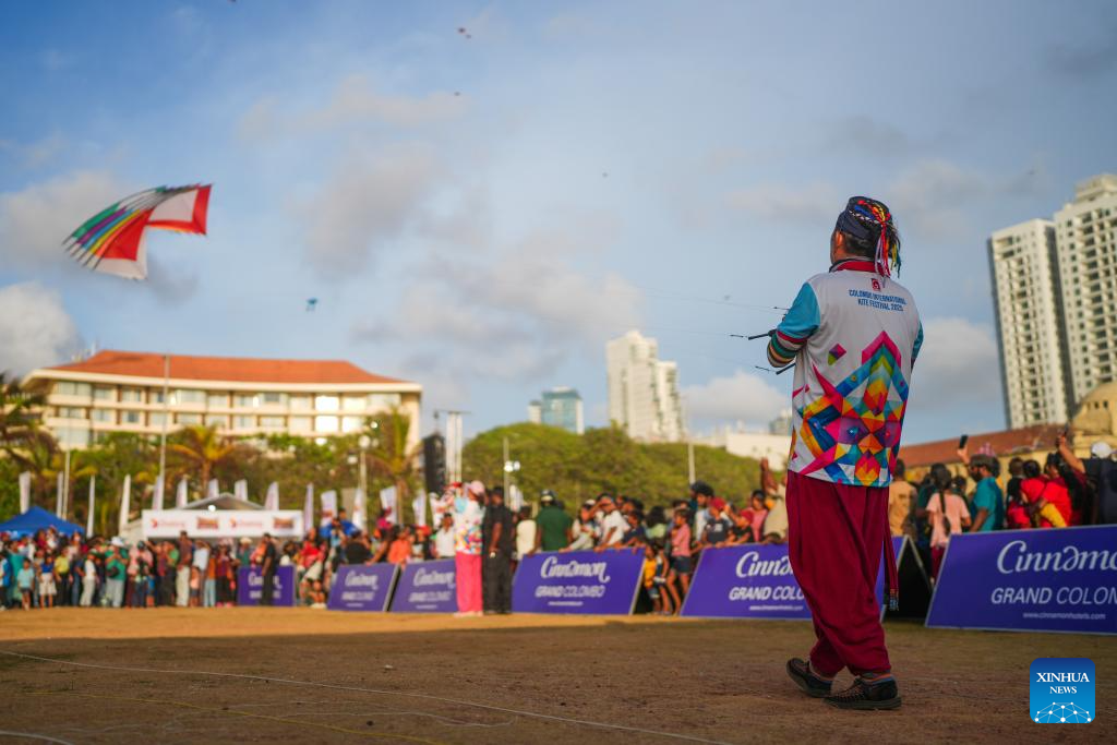 A man manipulates a kite at the Colombo International Kite Festival in Colombo, Sri Lanka, Aug. 24, 2025. (Photo by Thilina Kaluthotage/Xinhua)