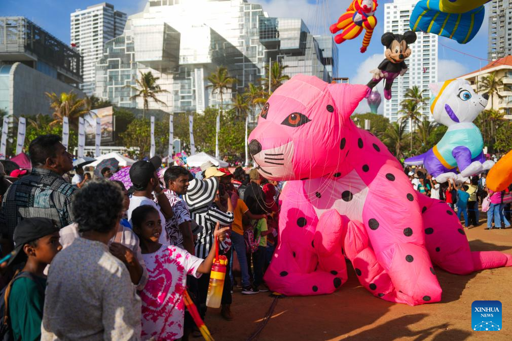 People view kites at the Colombo International Kite Festival in Colombo, Sri Lanka, Aug. 24, 2025. (Photo by Thilina Kaluthotage/Xinhua)