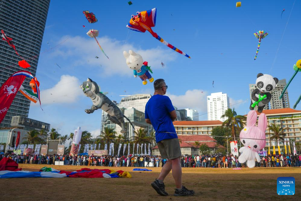 Flying kites are pictured at the Colombo International Kite Festival in Colombo, Sri Lanka, Aug. 24, 2025. (Photo by Thilina Kaluthotage/Xinhua)