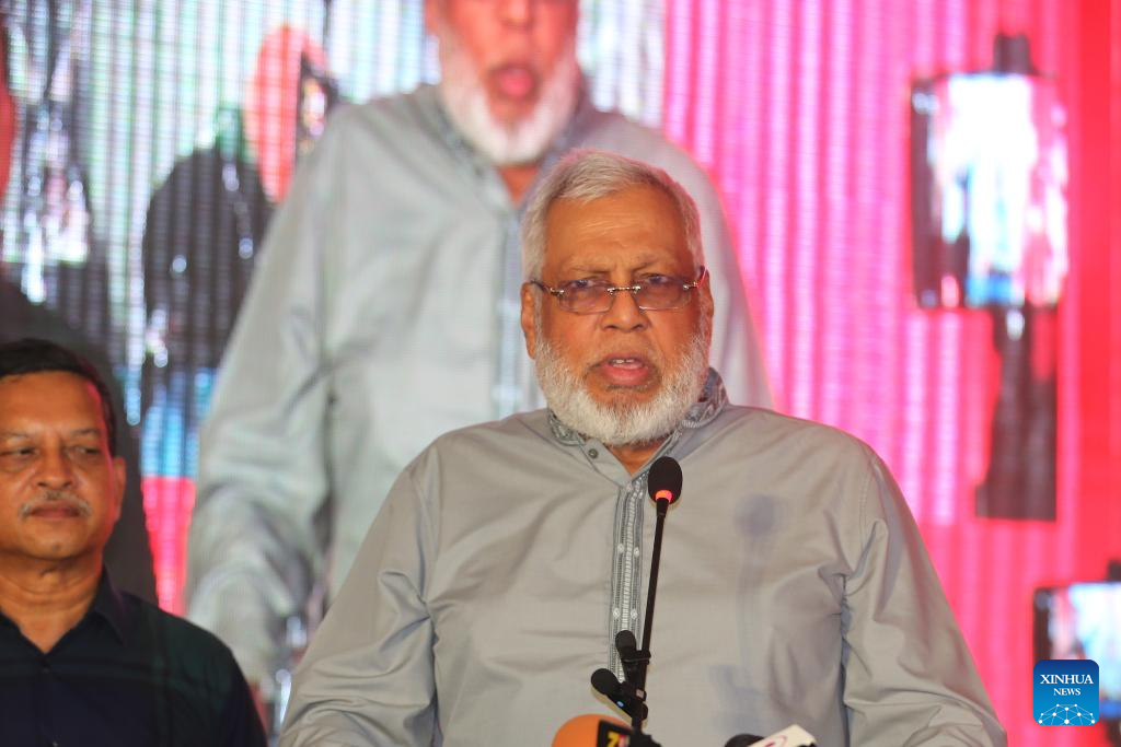 Muhammad Fouzul Kabir Khan, the Bangladeshi interim government's adviser to the ministries of road transport and bridges, railways, and power, energy and mineral resources, speaks at an opening ceremony of the first section of the Dhaka Bypass Expressway in Dhaka, Bangladesh on Aug. 24, 2025.