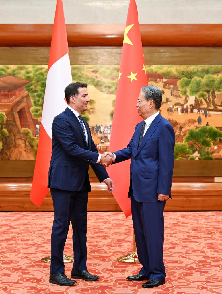Zhao, chairman of China's National People's Congress (NPC) Standing Committee, said that since the establishment of diplomatic relations between China and Switzerland 75 years ago, the bilateral relations have developed steadily, vividly illustrating a spirit of cooperation that features "equality, innovation and win-win outcomes."
