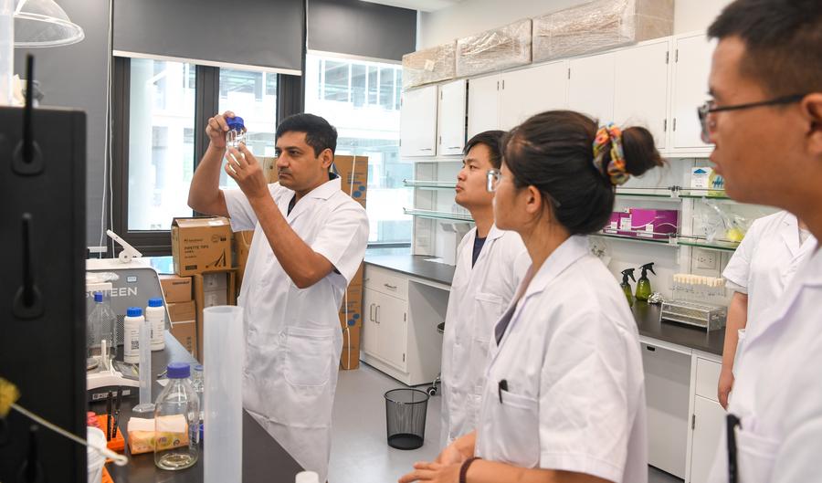 Waseem Raza works at a tropical crop breeding lab of Chinese Academy of Tropical Agricultural Sciences in Sanya, south China's Hainan Province, July 29, 2025. (Xinhua/Yang Guanyu)Waseem Raza (1st L) works at a tropical crop breeding lab of Chinese Academy of Tropical Agricultural Sciences in Sanya, south China's Hainan Province, July 29, 2025. (Xinhua/Yang Guanyu)Waseem Raza talks with his colleague at a tropical crop breeding lab of Chinese Academy of Tropical Agricultural Sciences in Sanya, south China's Hainan Province, July 29, 2025. (Xinhua/Yang Guanyu)Waseem Raza (2nd R) talks with his colleague at a tropical crop breeding lab of Chinese Academy of Tropical Agricultural Sciences in Sanya, south China's Hainan Province, July 29, 2025. (Xinhua/Yang Guanyu)