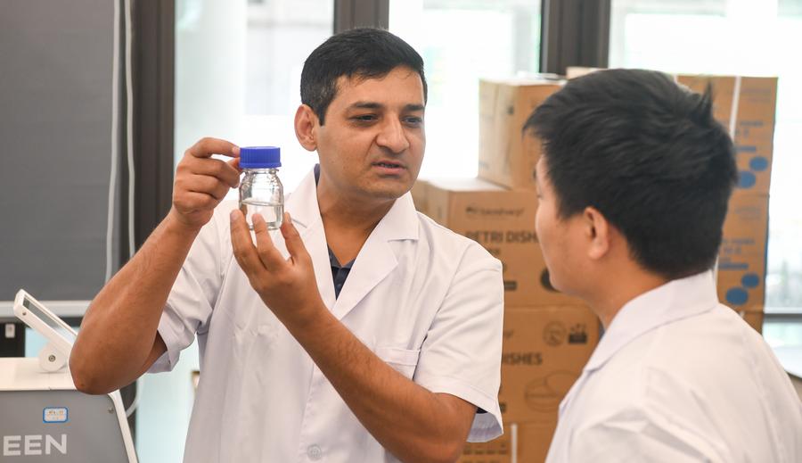 SANYA, Aug. 26 (Xinhua) -- Waseem Raza, a 45-year-old Pakistani, works as an associate researcher at the Chinese Academy of Tropical Agricultural Sciences (CATAS). He pursued a doctoral degree at Nanjing Agricultural University and joined the university as a faculty member after graduation. This year, he was recruited by the CATAS Sanya Research Institute through a high-level talent program, embarking on a new career in Sanya of south China's Hainan Province.