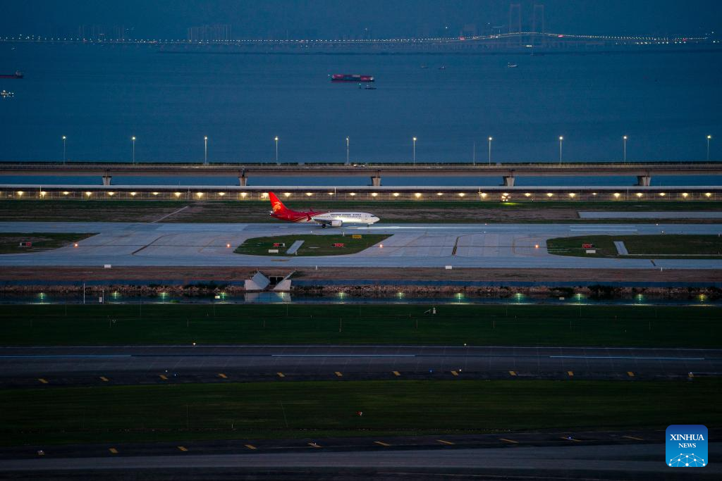 An aircraft of Shenzhen Airlines conducts a trial flight at the third runway of Shenzhen Bao'an International Airport in Shenzhen, south China's Guangdong Province, Aug. 26, 2025.