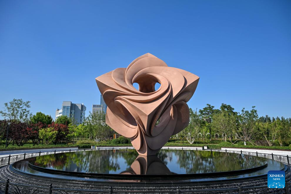 A flower-shaped sculpture symbolizing friendship is pictured in Hexi District, north China's Tianjin, Aug. 25, 2025. The SCO Summit 2025 will be held here from Aug. 31 to Sept. 1. (Xinhua/Sun Fanyue)