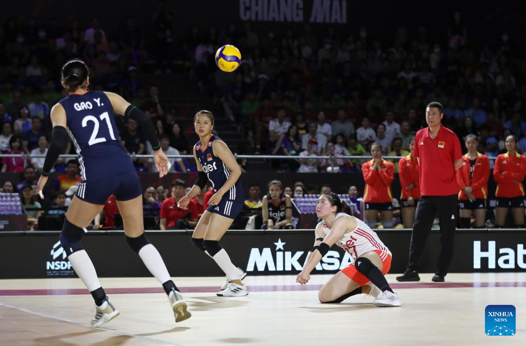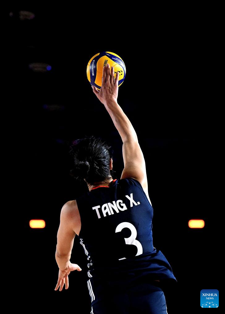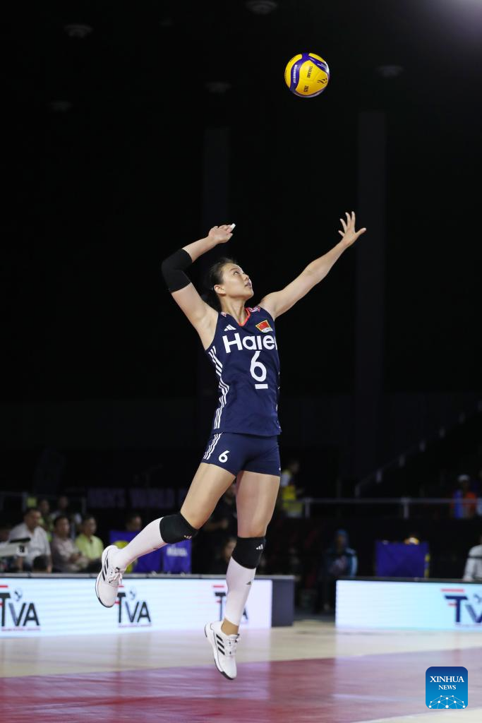 Ni Feifan of China competes during the Preliminary Phase Pool F match between China and Colombia at the Volleyball Women's World Championship in Chiang Mai, Thailand, Aug. 25, 2025. (Xinhua/Hou Zhaokang)
