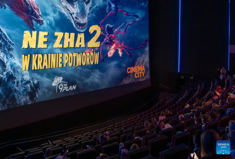 Audience wait for the screening of the Chinese animated film Ne Zha 2 during a preview event at a cinema in Warsaw, Poland, on Aug. 26, 2025. The film is scheduled for official release in Poland on Aug. 29. (Xinhua/Xia Yuanyi)