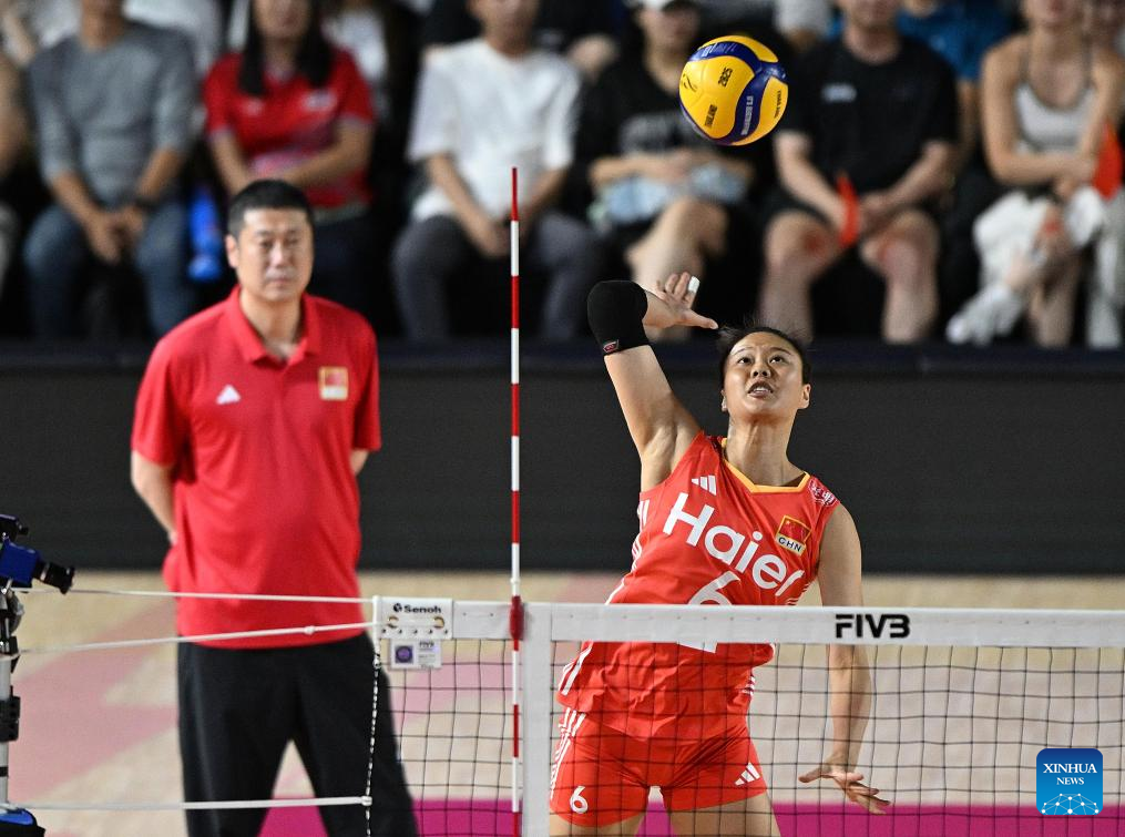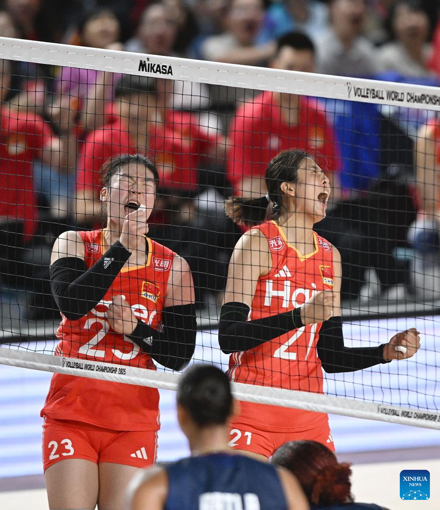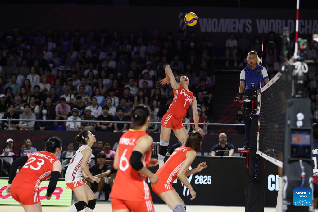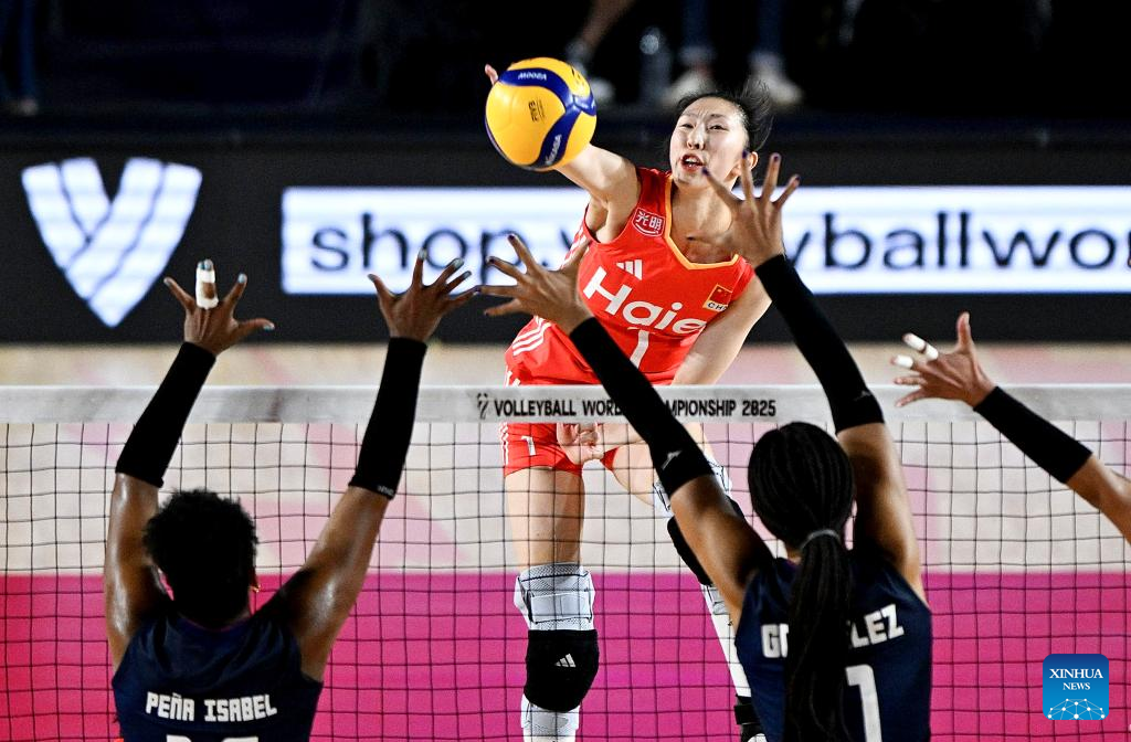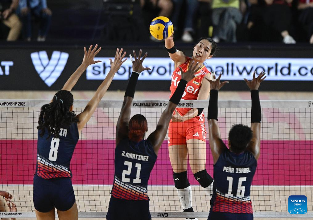 CHIANG MAI, Thailand, Aug. 27 (Xinhua) -- China swept the Dominican Republic in straight sets 25-15, 25-21, 25-17 on Wednesday to complete the preliminary stage undefeated at the 2025 FIVB Volleyball Women's World Championship.