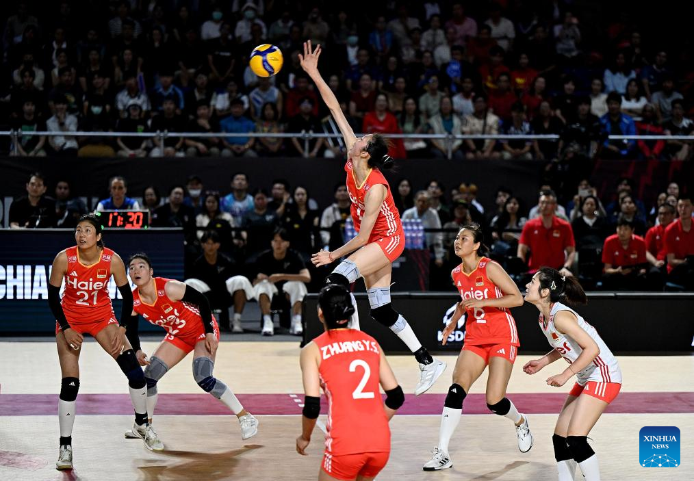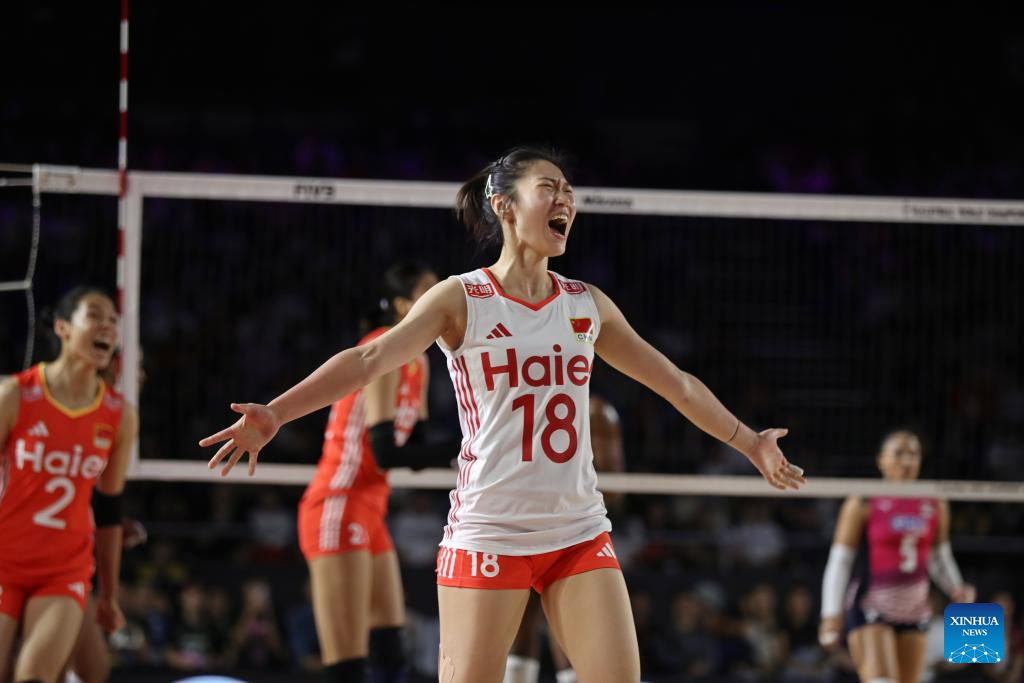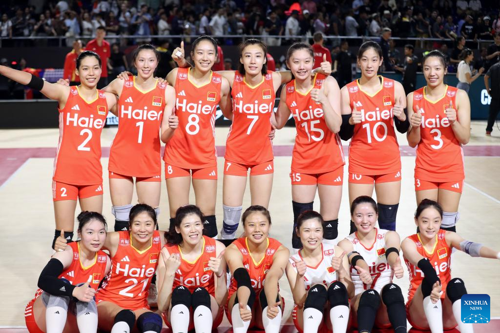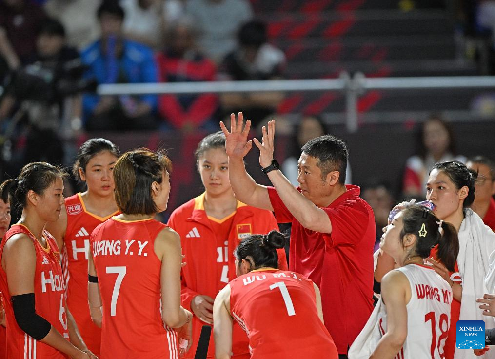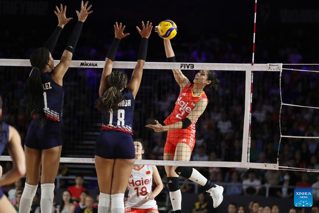 CHIANG MAI, Thailand, Aug. 27 (Xinhua) -- China swept the Dominican Republic in straight sets 25-15, 25-21, 25-17 on Wednesday to complete the preliminary stage undefeated at the 2025 FIVB Volleyball Women's World Championship.