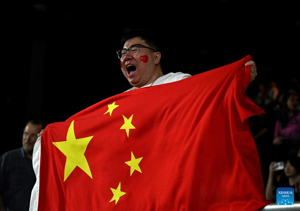 A fan celebrates victory for team China after the Preliminary Phase Pool F match between China and the Dominican Republic at the Volleyball Women's World Championship in Chiang Mai, Thailand, Aug. 27, 2025. (Xinhua/Hou Zhaokang)