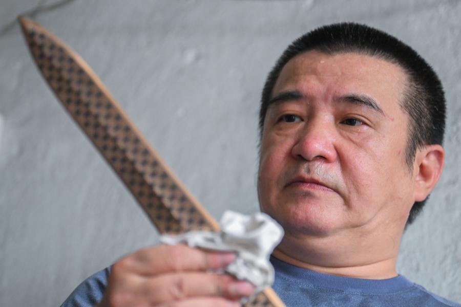 Lead-Tin Engraving craft has been passed down for five generations in Ao's Family in Jingzhou of central China's Hubei Province. Ao Xinghua, 52 years old, a fourth-generation inheritor, has been doing the work for over 30 years. Since childhood, he had followed his father Ao Chaozong, a national-level inheritor of the art who had mastered all the procedures of making a bronze ware, to get in touch with the craft. "My grandfather and father regarded the art as their lives, and had devoted all they have into it," said Ao Xinghua.