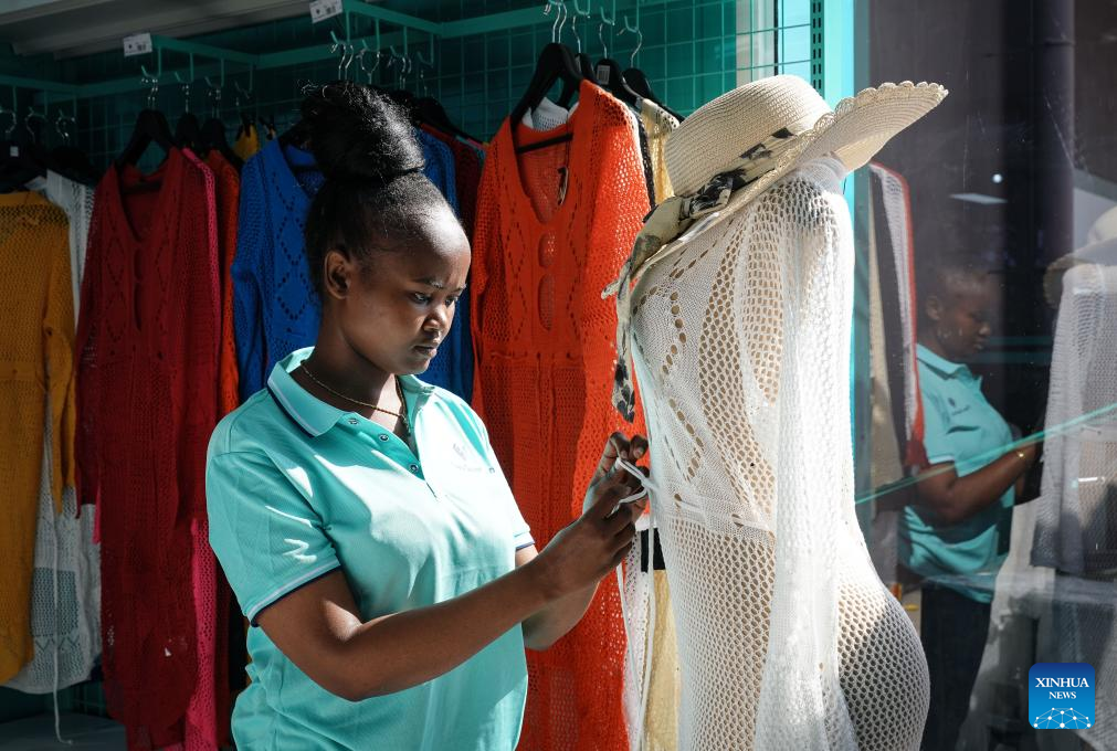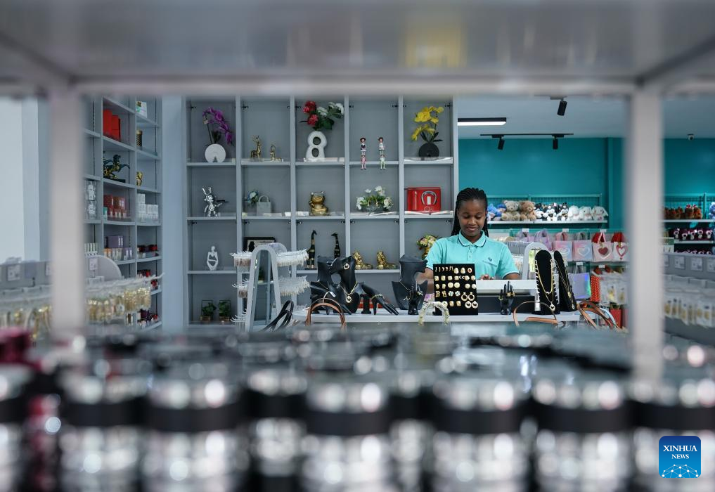 A shop assistant works at Yiwu Selection store in Nairobi, Kenya, on Aug. 29, 2025. Yiwu Selection, a brand export collection store, officially opened in Nairobi, Kenya's capital, on Friday, introducing high-quality and affordable Chinese products to local shoppers. (Xinhua/Han Xu)