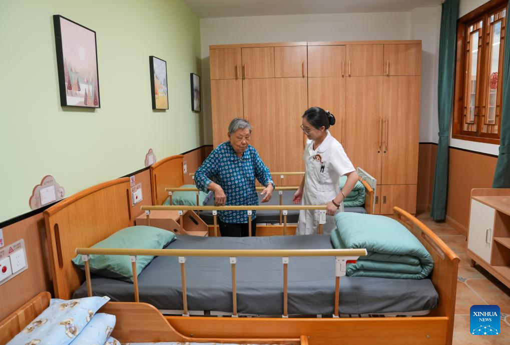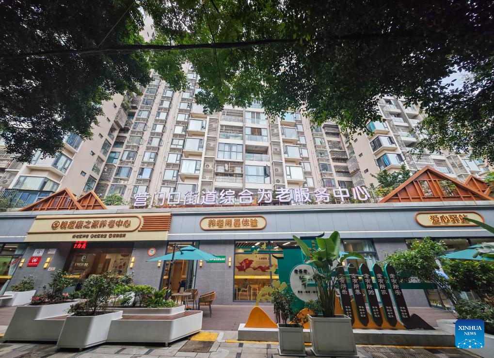 This photo taken on Sept. 1, 2025 shows a comprehensive elderly care center in Yingmenkou subdistrict of Chengdu, southwest China's Sichuan Province. The comprehensive elderly care center covers an area of 1,400 square meters and serves multiple residential communities. Supported by the government and run by enterprise management with social participation, this community-based elderly care complex offers full-time care, daycare, rehabilitation therapies, and professional nursing services. (Xinhua/Jiang Hongjing)