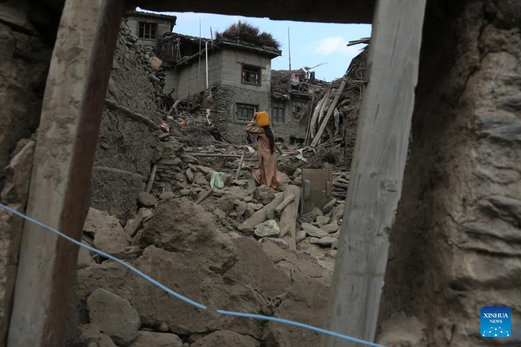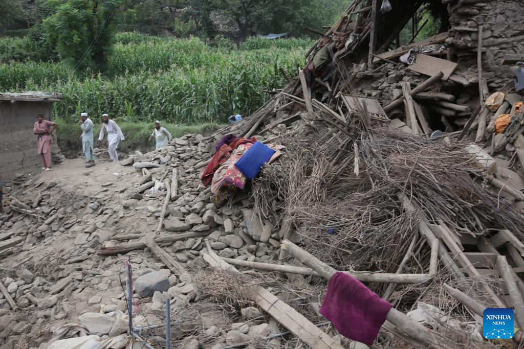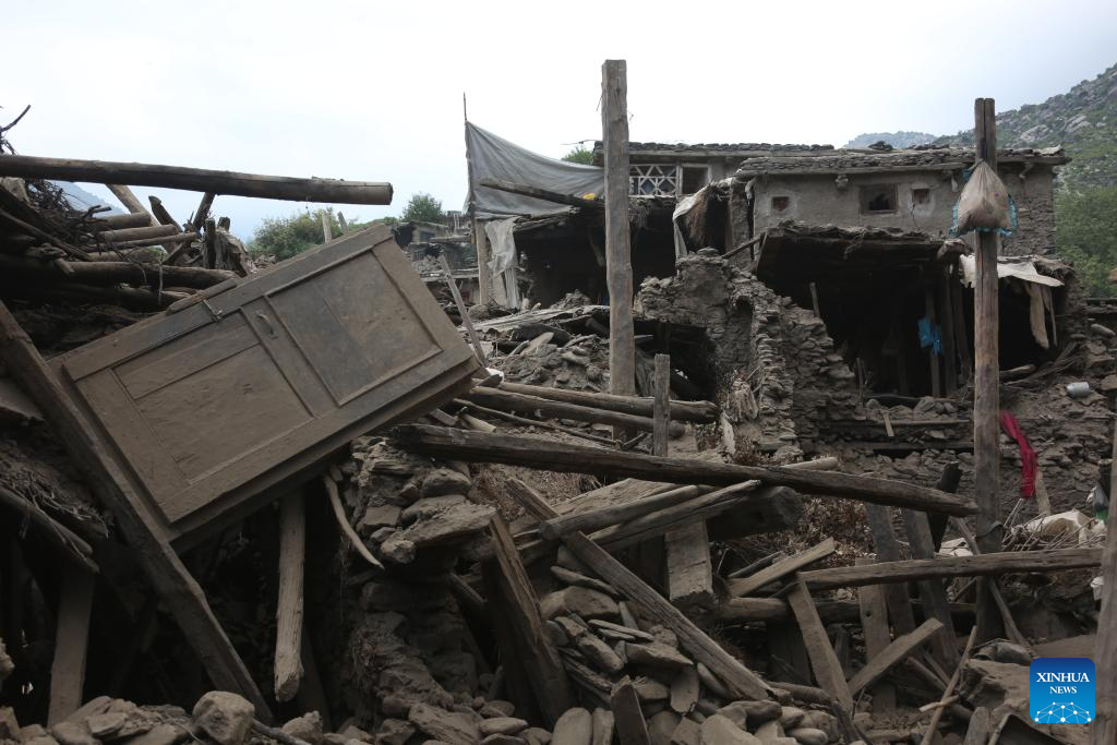 People check the ruins at the earthquake-hit area in Nurgal district of Kunar province, Afghanistan, Sept. 1, 2025. The death toll from the powerful earthquake that struck eastern Afghanistan has climbed to 1,124, with 3,251 others injured, according to the Afghan Red Crescent Society on Tuesday. (Photo by Saifurahman Safi/Xinhua)