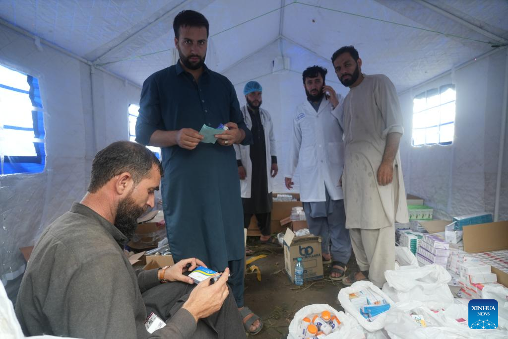 Tents have been set up for displaced families in several locations, while the organized distribution of emergency relief supplies is ongoing, Afghan interim government deputy spokesperson Hamdullah Fitrat said in a post on X. (Xinhua/Li Ang)