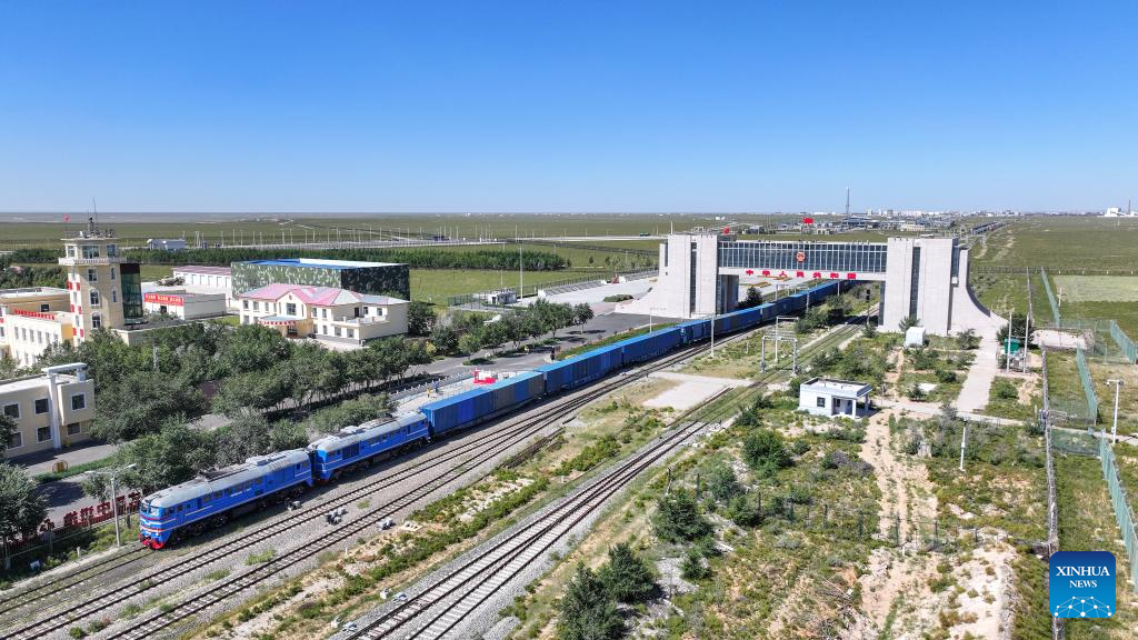 Erenhot, the largest land port on the China-Mongolia border, is a pivotal entry-exit point for the central route of the China-Europe railway service. As of Sept. 3, inbound and outbound passenger traffic volumes and the number of vehicles driving through Erenhot reached 1.976 million and 512,000, respectively, up by 13.2 percent and 16.6 percent compared with the same period of last year. (Xinhua/Ma Jinrui)