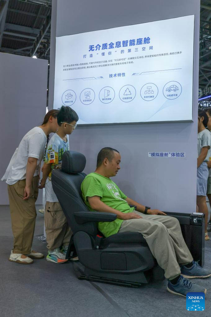 A visitor tries a smart car seat with a medium-less holographic intelligent technology during the World Smart Industry Expo 2025 in southwest China's Chongqing Municipality, Sept. 6, 2025.(Xinhua/Chen Cheng)