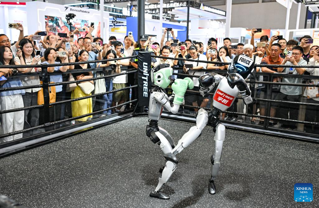 Robot players compete during a boxing game at the World Smart Industry Expo 2025 in southwest China's Chongqing, Sept. 5, 2025. The World Smart Industry Expo 2025 kicked off on Friday in southwest China's Chongqing Municipality, bringing together more than 600 domestic and international businesses to showcase innovations across various sectors, including autonomous driving, smart homes and the low-altitude economy. (Xinhua/Wang Quanchao)