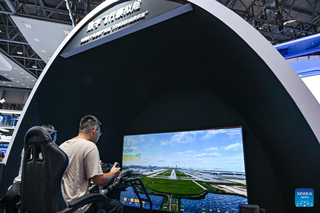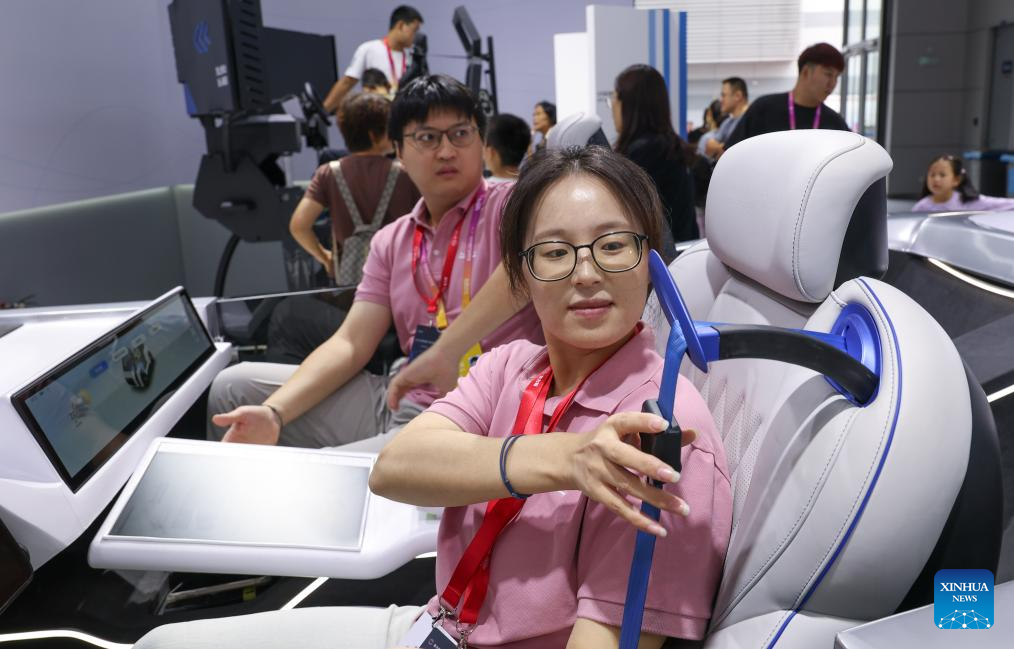 A visitor tries a flight simulator during the World Smart Industry Expo 2025 in southwest China's Chongqing, Sept. 5, 2025. The World Smart Industry Expo 2025 kicked off on Friday in southwest China's Chongqing Municipality, bringing together more than 600 domestic and international businesses to showcase innovations across various sectors, including autonomous driving, smart homes and the low-altitude economy. (Xinhua/Wang Quanchao)